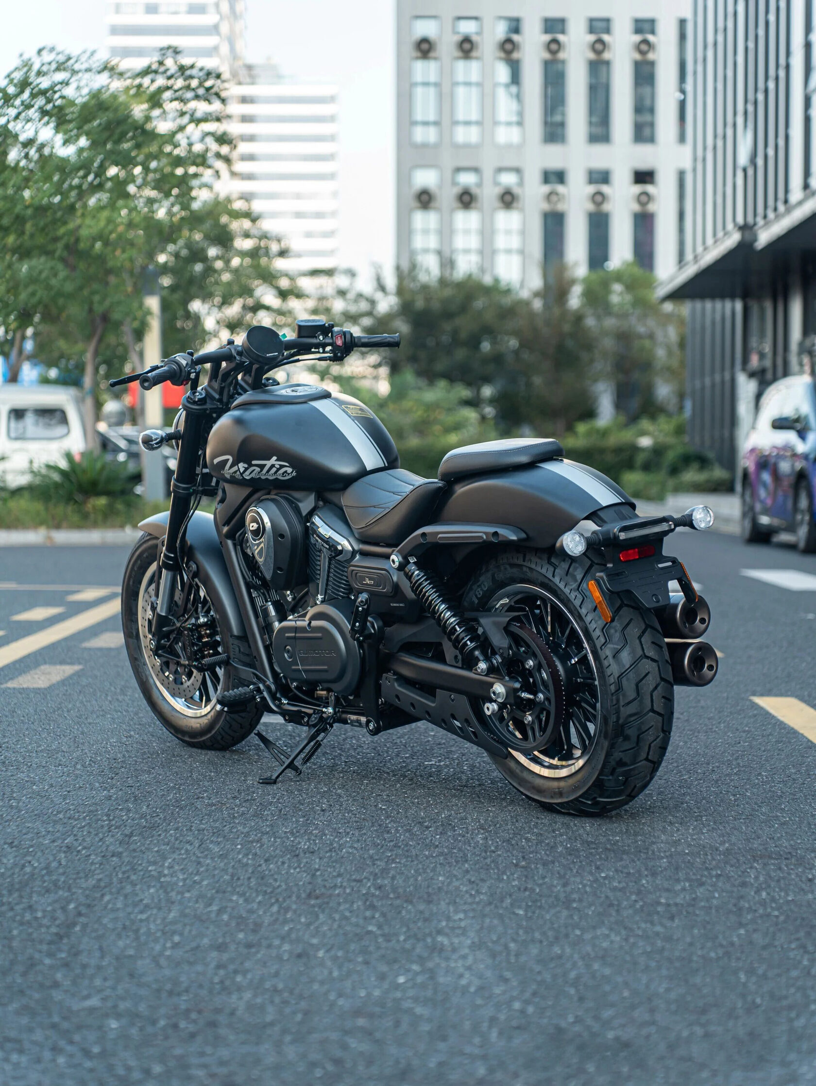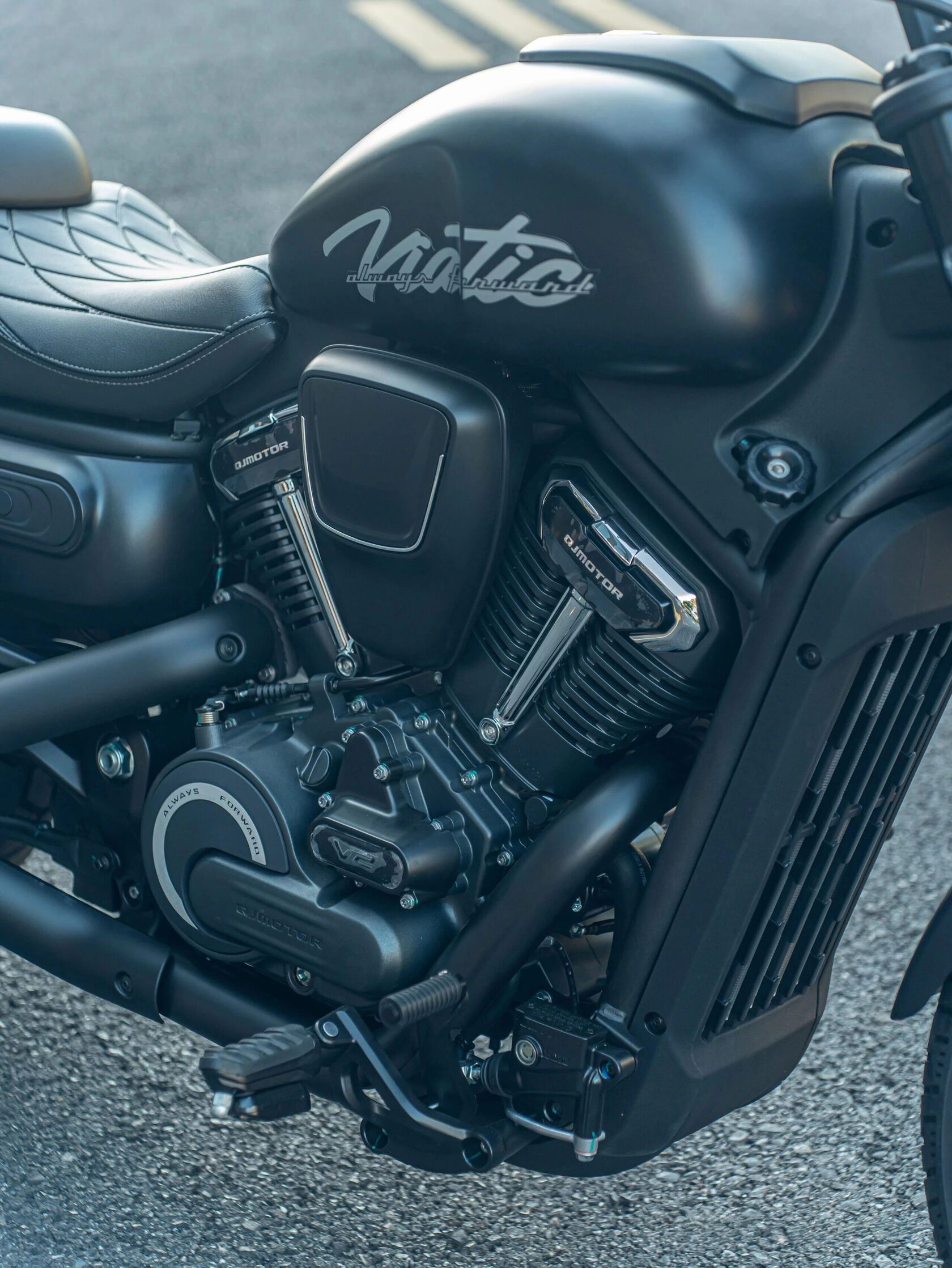 Главная задача дизайнеров заключалась в создании гармоничного силуэта классического круизера с аккуратными акцентами нового времени. Чистые линии мотоцикла, отсутствие лишних элементов и точные пропорции формируют узнаваемый образ в фирменном стиле QJMOTOR.